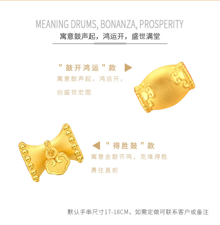 黃金轉(zhuǎn)運(yùn)珠佩戴時(shí),隨著肢體動(dòng)作不停轉(zhuǎn)動(dòng),寓意為佩戴者時(shí)時(shí)轉(zhuǎn)運(yùn),使這好運(yùn)隨身。