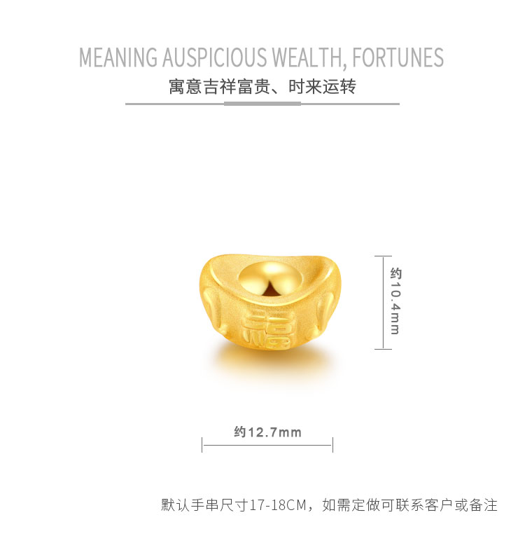 黃金轉(zhuǎn)運珠佩戴時,隨著肢體動作不停轉(zhuǎn)動,寓意為佩戴者時時轉(zhuǎn)運,使這好運隨身。