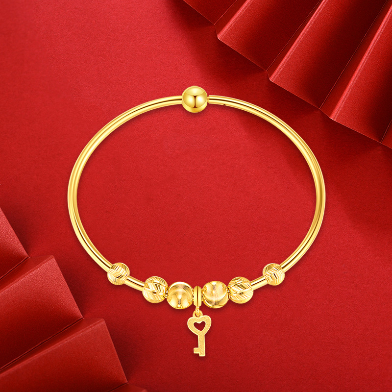 貓眼珠黃金手鐲“祈?!薄靶蔫€”“心鎖”系列。貓眼珠系列手鐲寓意一把鑰匙開(kāi)一把鎖,只為自己的愛(ài)人打開(kāi)內(nèi)心的美好祝愿,并為心愛(ài)的人祈求平安幸福。
